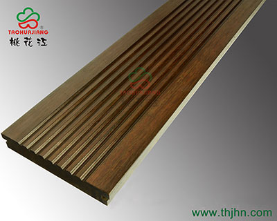 桃花江戶外重竹地板顏色為碳化色,根據(jù)碳化的時(shí)間與溫度,可以分成深碳,淺碳,和中碳。目前比較多的是中碳,色調(diào)溫和美觀。